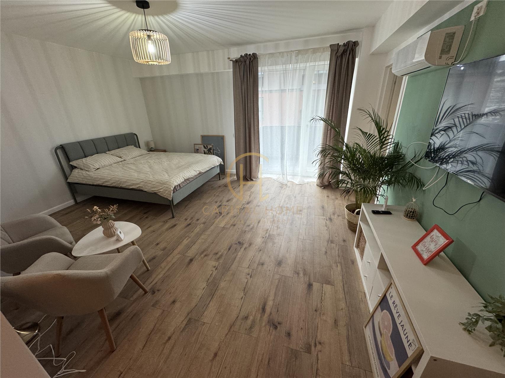 Apartamentul este amenajat cu atenție la detalii, oferind confort și funcționalitate, fiind ideal pentru o persoană sau un cuplu.